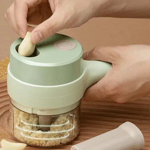 4-in-1-Funktion: Schneiden, Hacken, Schälen und Reinigen in einem Gerät.